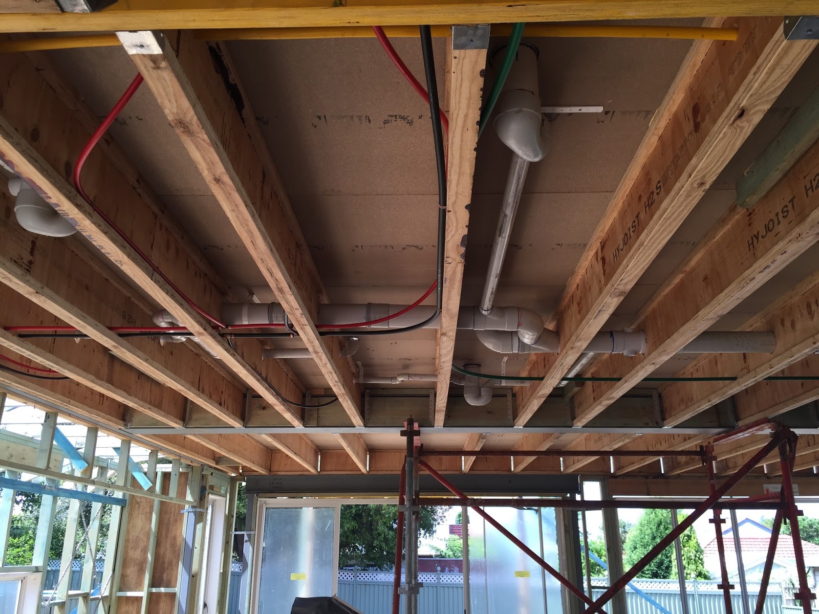 The rough in started shortly after the frames on 5/10/15. Plumbing in now complete with Sydney Water mains connected and gas lines ready for connection later on. On with the pics....